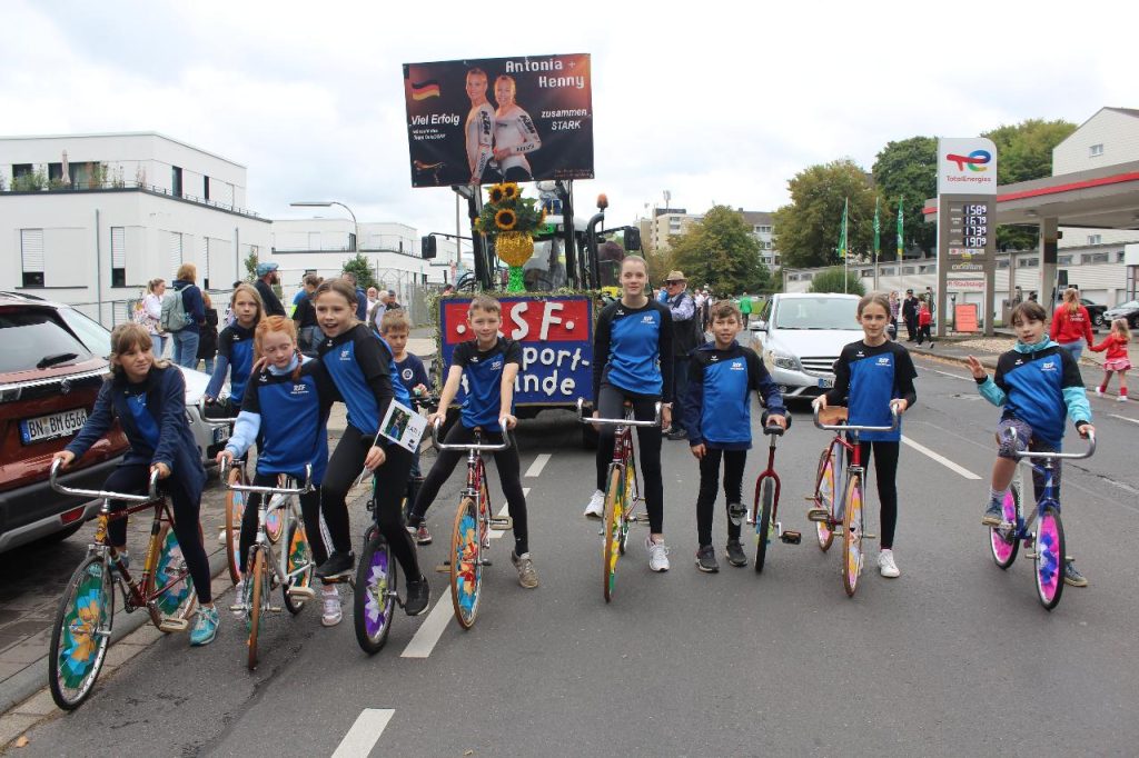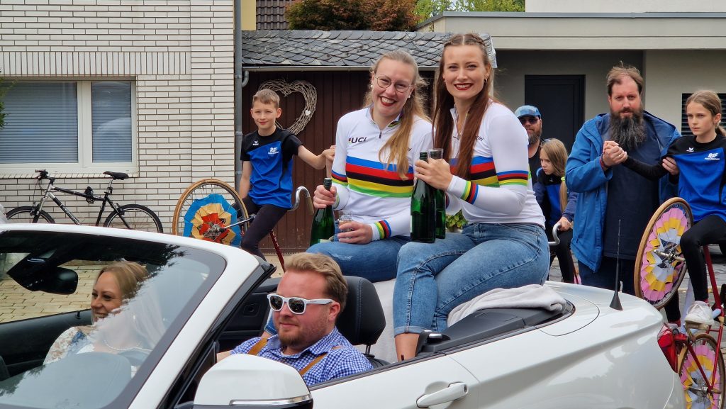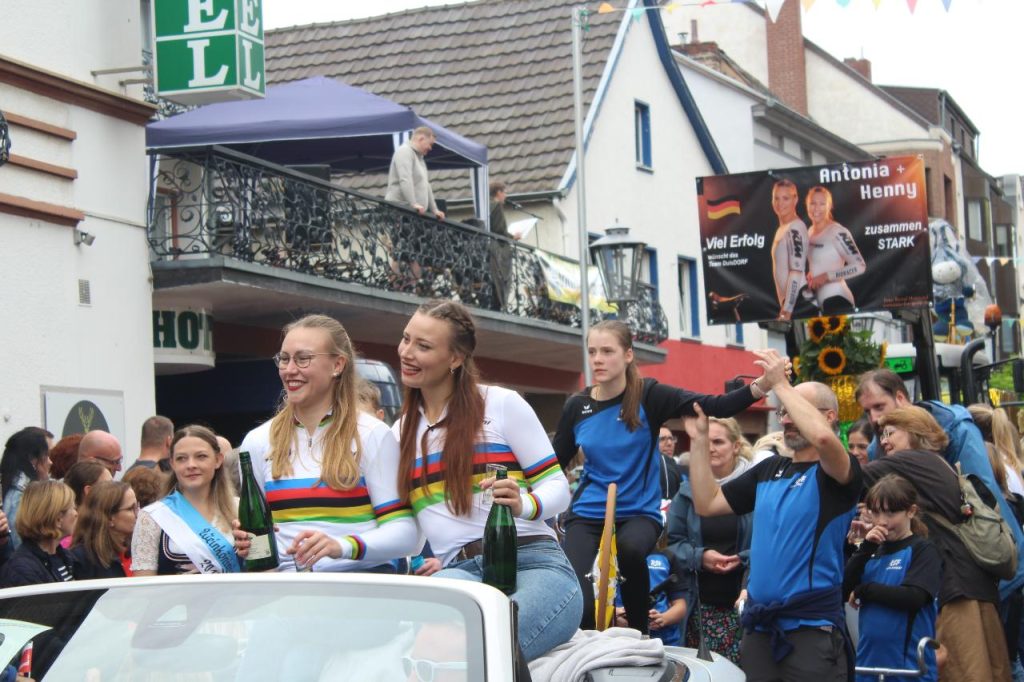 Nach der Teilnahme am 2. German Masters in Bruckmühl bei Rosenheim am Vorabend und der nächtlichen Heimfahrt war die Nacht kurz für Henny und Antonia. Der Ortsfestausschuss Duisdorf hatte sie nach dem Gewinn des WM-Titels zur Teilnahme am diesjährigen Weinfestumzug eingeladen.