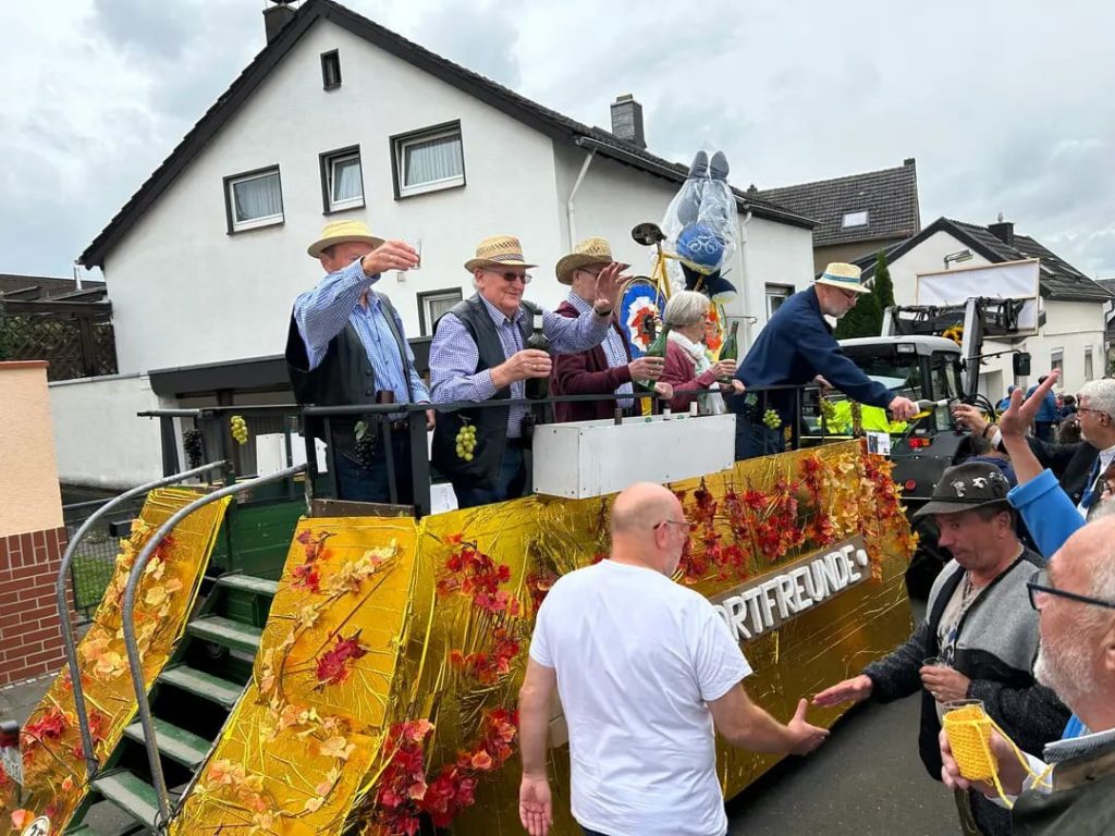 Auch das „Team Festwagen“ hatte Freude am Umzug und füllte so manches Glas am Wegesrand.