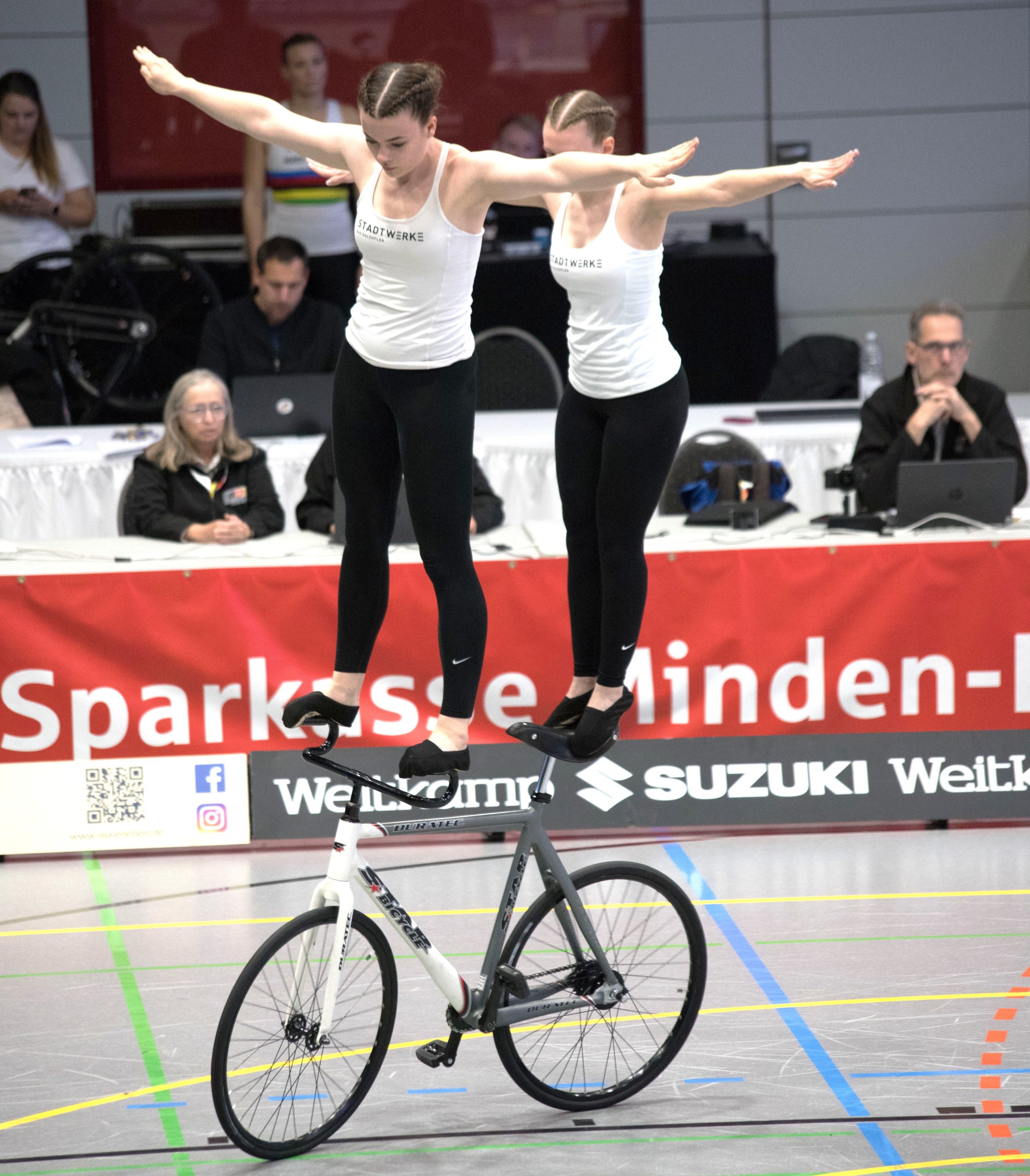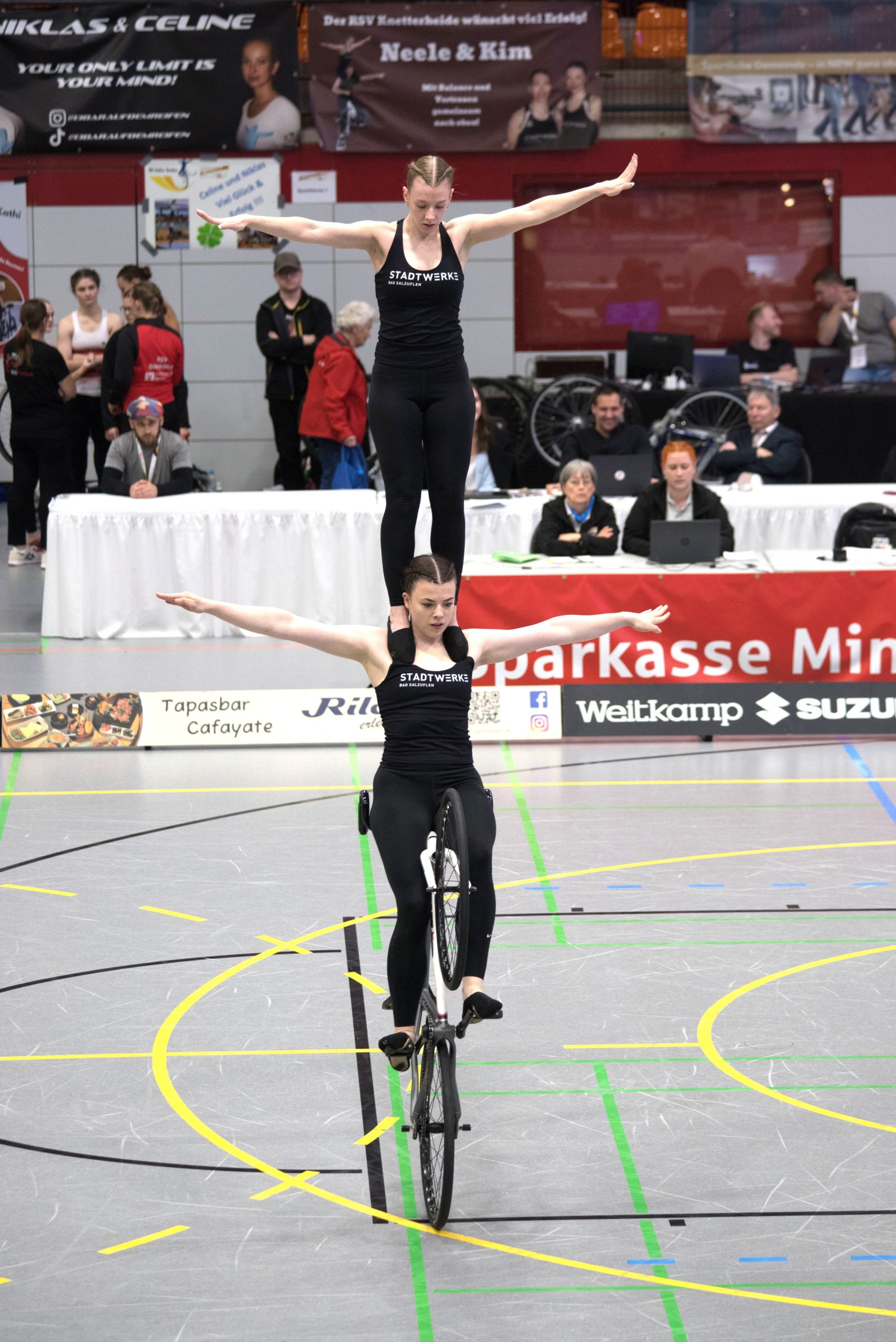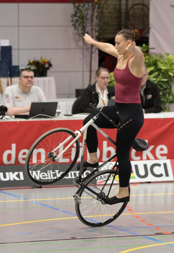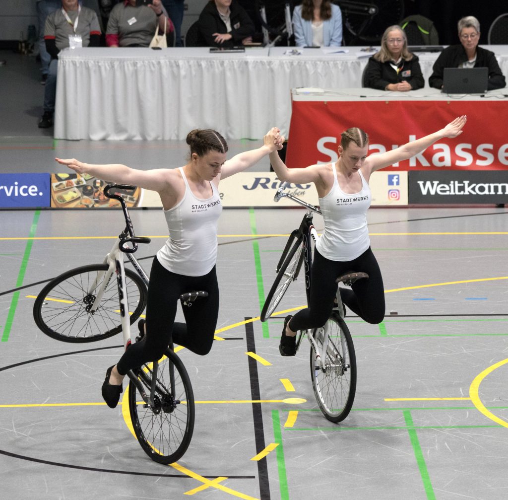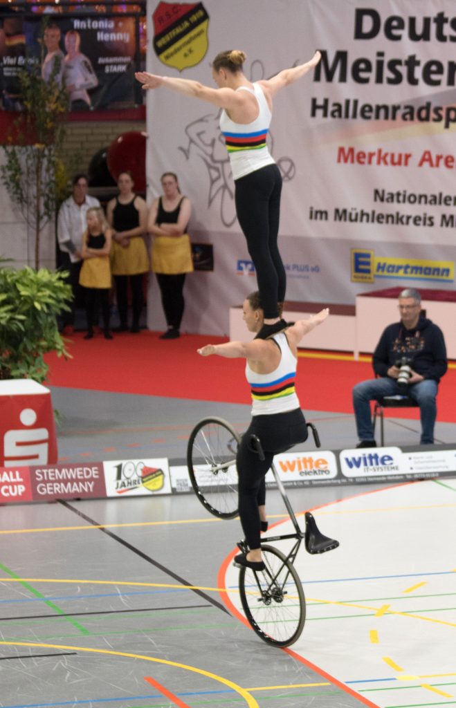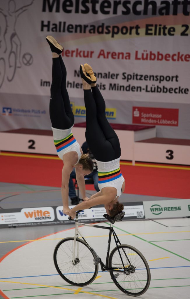 Im zweiten Teil der Kür auf einem Rad mit Handständen, Schulterständen und Hebeübungen fuhren sie dann gewohnt sauber, kamen schließlich auf 133,99 Punkte.