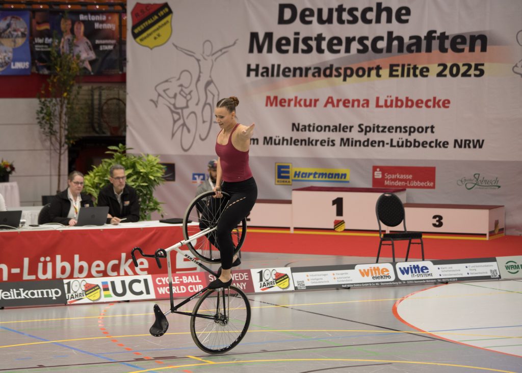 Am 18./19. Oktober fanden die Deutschen Hallenradsportmeisterschaften 2025 in Lübbecke statt. In der Merkur-Arena wurden die Deutschen Meistertitel im Kunstradfahren im Einer und Zweier, im Vierer- und Sechser-Mannschaftsfahren sowie bei den Einrad-Mannschaften vergeben. In der Vorrunde zur DM fielen die letzten Entscheidungen zur Vergabe der Tickets für die WM in Göppingen im November.