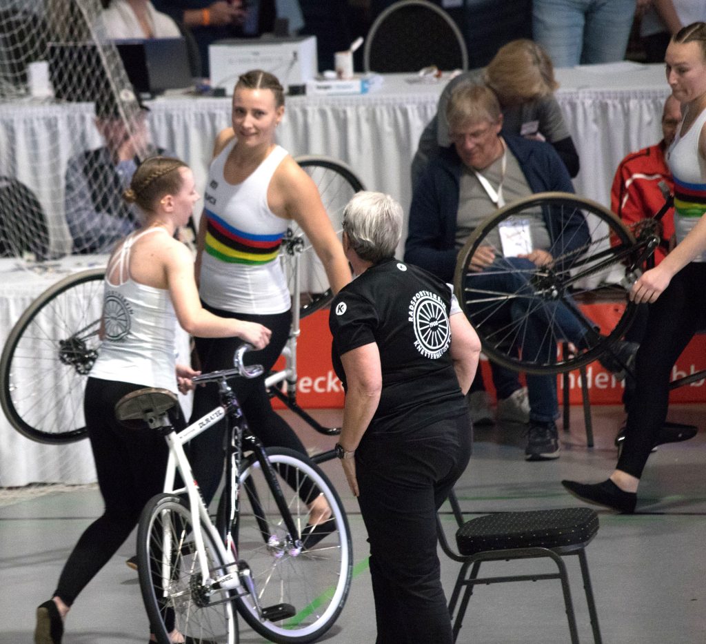 In der Vorrunde zum Zweier-Kunstradfahren am Sonntag qualifzierten sich Knobelspies/Knobelspies aus Volkertshausen erstmals als Ersatzfahrerinnenn die WM hinter den bereits als Starterinnen qualifzierten Kim Schlüter und Neele Jodeleit vom RSV Knetterheide und Antonia und Henny aus Duisdorf.