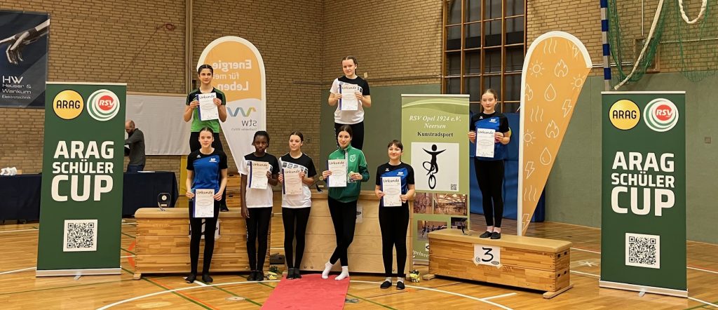 Auch im 2er Kunstradsport der Schülerinnen waren die Duisdorfer erfolgreich. Hier reiht sich eine weitere Bestleistung in die Auflistung ein. Mit 41,98 ausgefahrenen Punkten kamen Lizzy Grips und Daria Hüller auf den zweiten Platz.