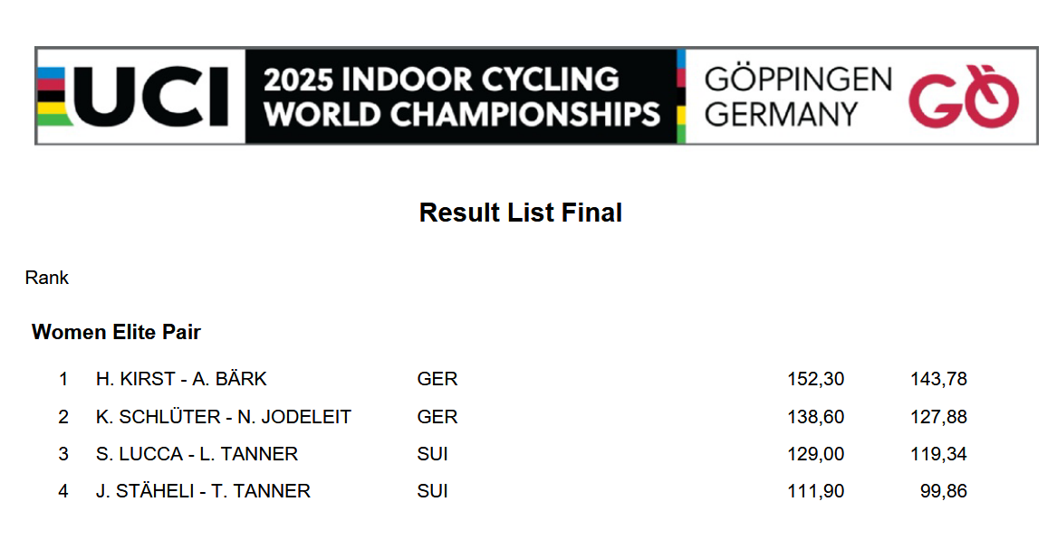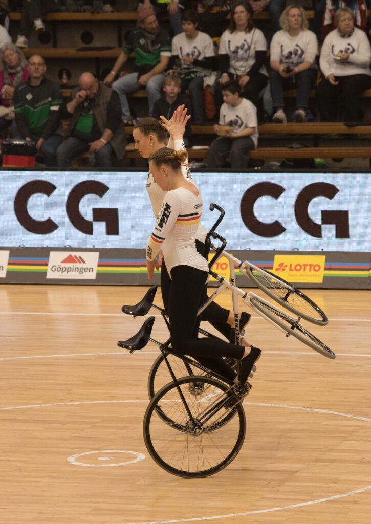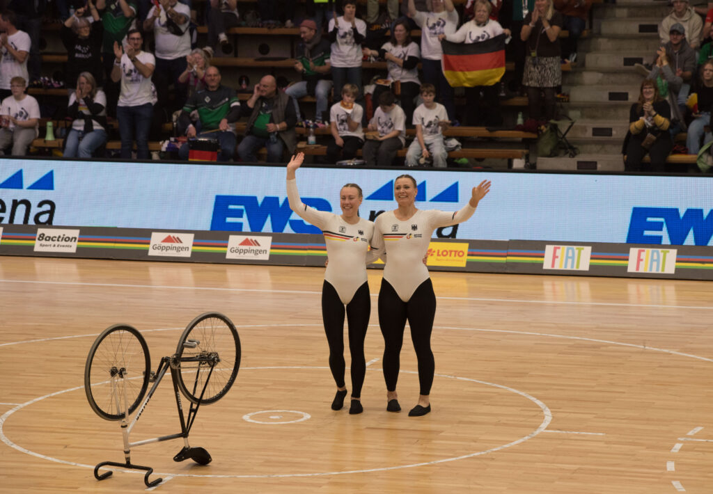 Für unsere Sportlerinnen Henny Kirst und Antonia Bärk war es nach dem WM-Gewinn in Bremen 2024 die zweite, aber auch letzte WM-Teilnahme, da die beiden das Ende ihrer gemeinsamen Karriere zum Saisonabschluss beim Weltcup in Öschelbronn angekündigt hatten. Zuvor aber galt es, den WM-Titel zu verteidigen. Ausgehend von der eingereichten Punktzahl waren die stärksten Konkurrentinnen wie im vergangenen Jahr Kim Schlüter und Neele Jodeleit vom RSV Knetterheide. Damit wurde Deutschland wie 2024 im Zweier-Kunstradsport der Frauen wieder vom „Team NRW“ vertreten, das An- und Abreise auch im gemeinsamen Team-Bus organisierte.